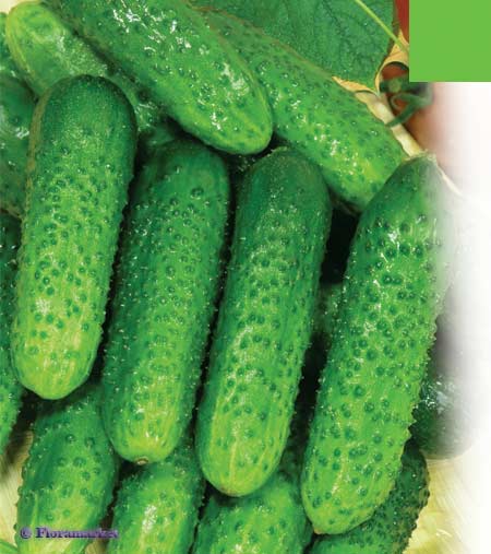 Раннеспелый, высокоурожайный, до 13 кг/м2, пчелоопыляемый гибрид (40-44 дня от всходов до плодоношения), для выращивания в открытом грунте и под плёночными укрытиями. Зеленец цилиндрический, мелкобугорчатый, без пустот и горечи, хрустящий, длиной 8-10 см, массой 90-100 г. Вкусовые качества отличные. Плоды используются в свежем виде, для маринования и для засолки в начале сезона сбора плодов. Благодаря раннеспелости и продолжительному плодоношению гибрида, с начала лета и до осени вы будете иметь стабильные урожаи.